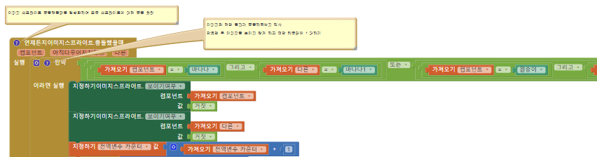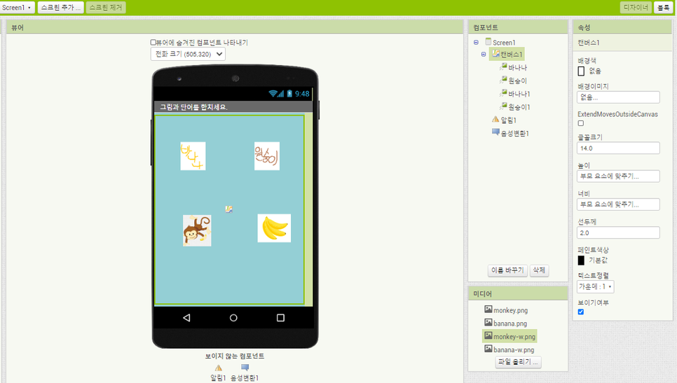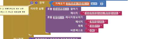 앱인벤터 (한글 화면)에서 작성하였습니다.