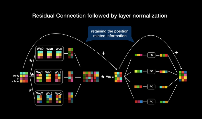 Attention(q, k, v) -> Multi-Head Attention (Wq, Wk, Wv) -> Wz