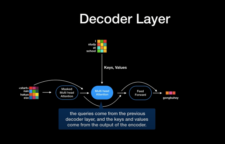 Input Embedding -> Positional Encoding -> Multi-Head Attention(+정규화) -> Feed Forward(+정규화)