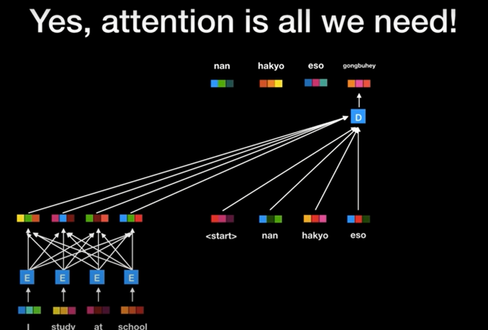 Seq2Seq(Encoder + Decoder) 구조이지만 Attention을 활용한 병렬 처리 가능