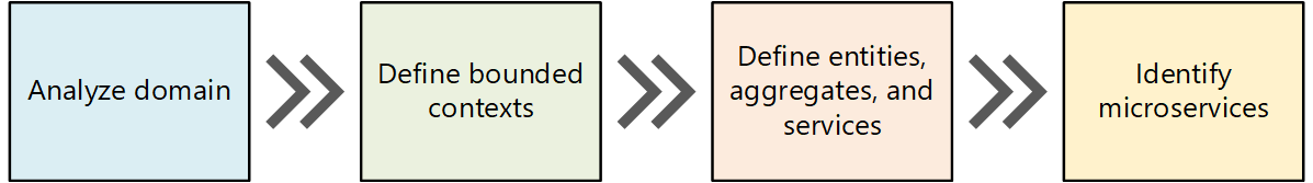 - 애플리케이션의 기능 요구 사항을 이해하기 위한 비즈니스 도메인 분석부터 시작합니다. 이 단계의 결과는 비공식적인 도메인 설명으로, 보다 공식적인 도메인 모델 세트로 구체화할 수 있습니다.