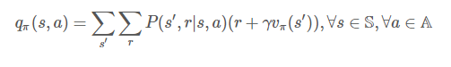 이와는 다르게 상태와 행동에 대한 가치함수는 상태-행동 가치함수(state-action value function)라고 하며 식은 아래와 같습니다.