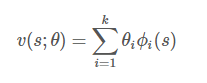 가치함수 v는 k개의 매개변수 θ로 표현됩니다.