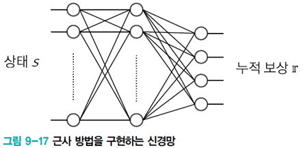 서로 다른 상태가 10^20개 이상 있으므로 근사 가치함수를 사용합니다.