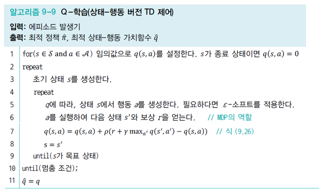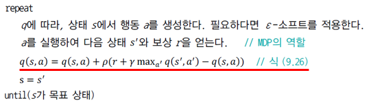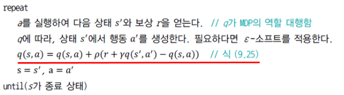 line 8에서는 결정된 행동에 따라 가치함수를 갱신합니다.(즉, 정책을 갱신합니다.)