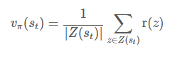 몬테카를로 방법은 Z(st)에 이 샘플을 추가한 다음 아래 식으로 가치함수를 갱신합니다.