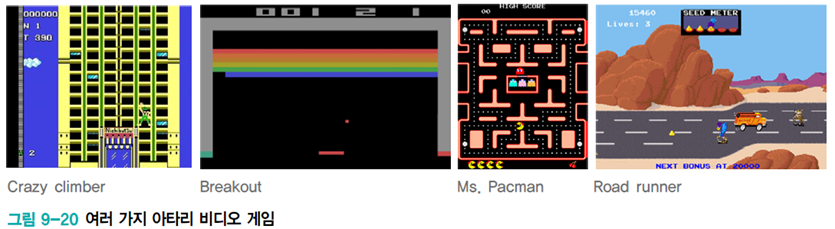 므니 등은 Atari 2600 게임 49종에서 자동으로 플레이하는 프로그램을 개발하였습니다. (Mnih et al., 2015)