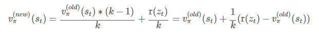 v(old)π(st)vπ(old)(st)는 직전까지의 가치함숫값, 즉 먼저 추가된 k-1개의 샘플 평균이고,