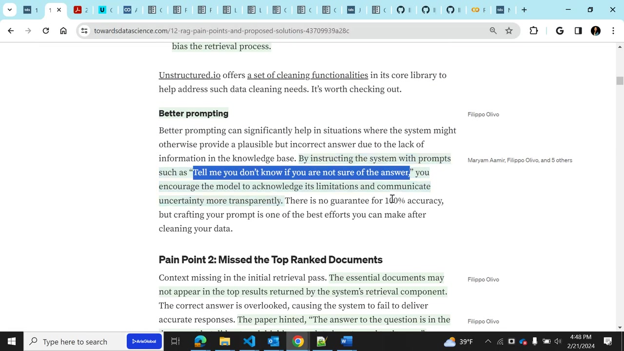 'unstructured IO cleaning library'를 활용하여 데이터 정제를 할 수 있으며, 더 나은 프롬프팅을 위해서도 작업이 필요합니다.
